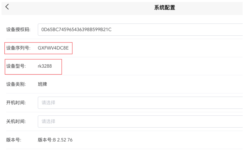 - 上图1设备页面的’序列号‘和’型号‘需要通过班牌SDK暴露的接口( (rk3288)SDK / (GT-10M)SDK )查询出来;