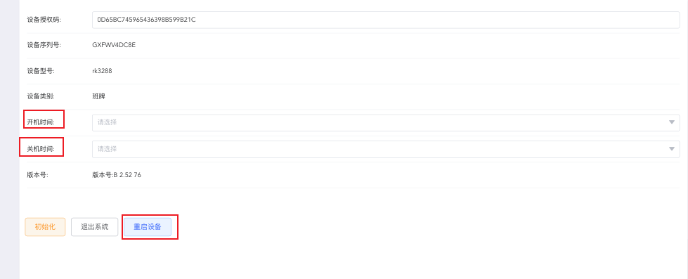 - 上图2设备页面的开机、关机、重启操作需要通过班牌SDK( (rk3288)SDK / (GT-10M)SDK )暴露的接口进行操作;